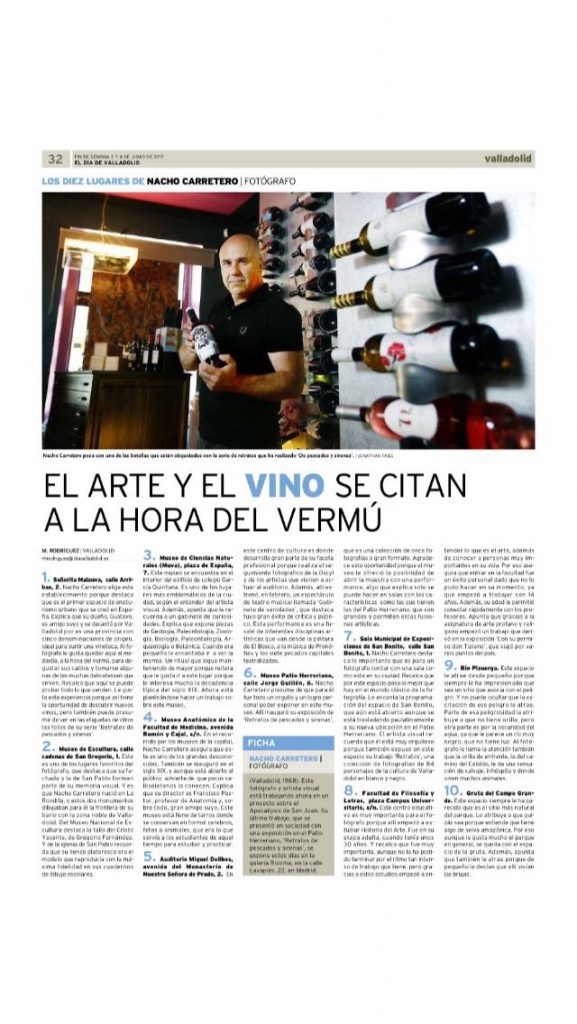El prestigioso fotógrafo vallisoletano, elige entre los 10 lugares favoritos de Valladolid a Señorita Malauva. Nacho Carretero afirma en el periódico El Día de Valladolid, que entre sus 10 sitios preferidos, se encuentra Señorita Malauva, ya que disfruta de una manera tranquila y placentera de los vinos que en este local se sirven y se […]